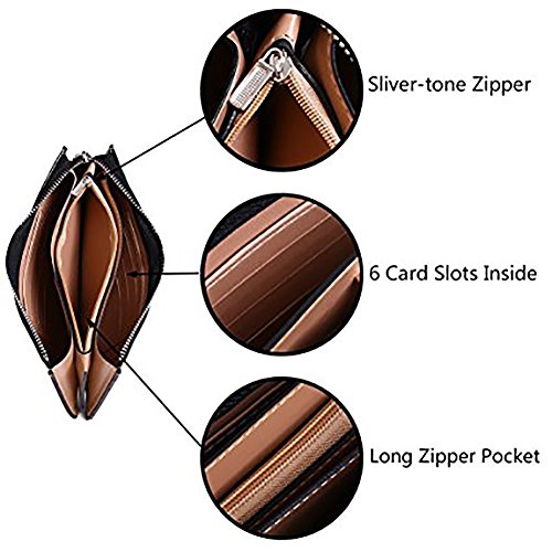 Womens Zippered Clutch Credit Card Holder Long Wallets with Wristlet