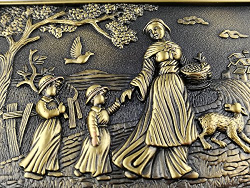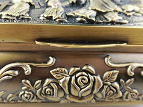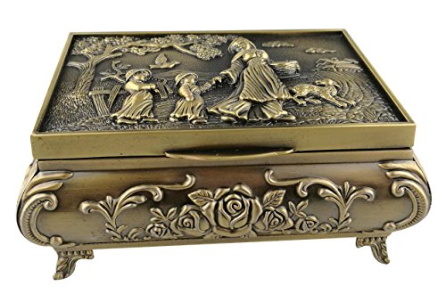 Russian Style Retro Carving Metal Handmade Jewelry Box Case Holder Treasure Storage Box (Farmer and kids, Brass)