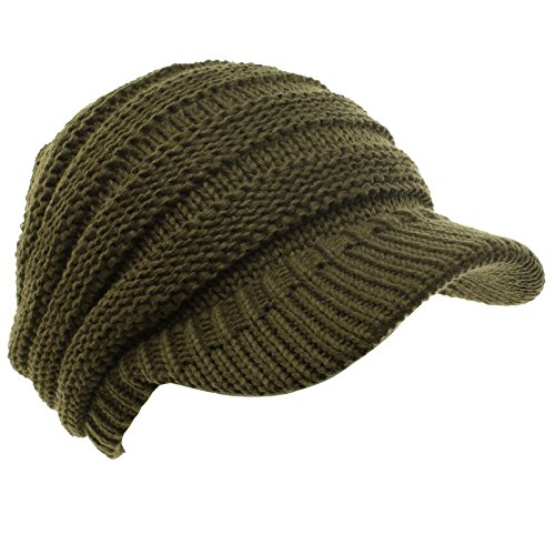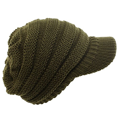 Unisex Winter Thick Chunky Stretch Knit Beanie Skully Visor Jeep Hat Cap Olive M