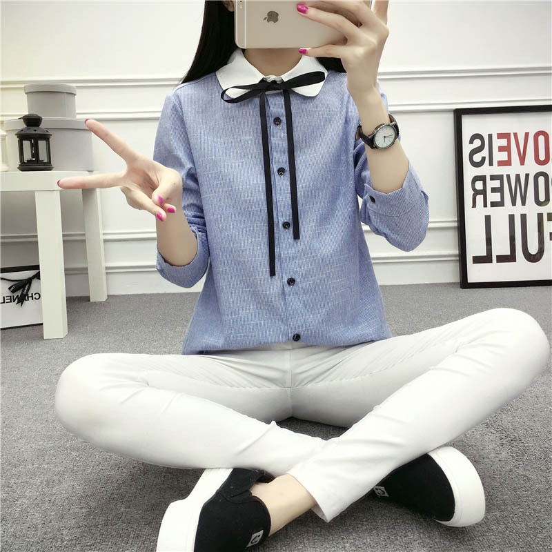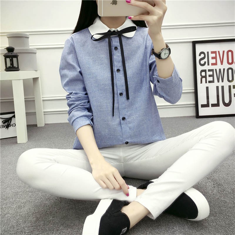 【入荷後営業日2,3日以内出荷予定 通関待ちや不良により出荷遅くなる場合はメールにてご連絡いたします。メール受信設定によっては正常に受信されない場合はございますので、 弊社からのメールを予め受信頂くようご設定くださいませ。】 トップス シャツ ブラウス マリン風 ボーダー柄 ストライプシャツ 長袖 リボン 大人可愛い レディス レディース 春 新作リボン付きマリン風細ストライプレディスシャツ◆サイズ:S着丈56肩幅36袖丈55胸囲82M着丈57肩幅37袖丈56胸囲86L着丈58肩幅38袖丈57胸囲90XL着丈59肩幅39袖丈58胸囲94◆素材:コットン70%+ポリエステル30%
