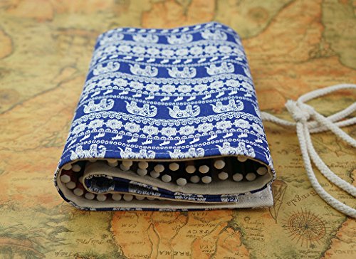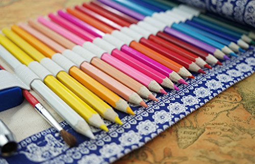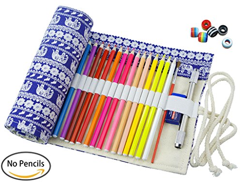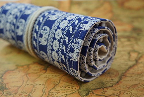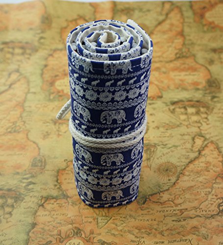 CreooGo Canvas Pencil Wrap, Pencils Roll Pouch Case Hold For 36 Colored Pencils ( Pencils are not included )-Retro elephant,36 Holes