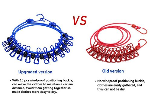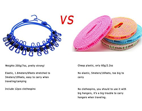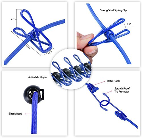 Specification Length: 6 feet, stretched up to 10 feet Bungee Cord: 70"(L) x 1/6"(Diameter) Clothespin: 2 1/6"(L) x 2/3"(W) x 1 1/3"(H) Item Weight: 7oz