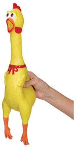 Studio : Toysmith Publisher : Toysmith Binding : Toy Product Description Enjoy hours of fun and laughter with the Toysmith Squawkin' Chicken. This version of a classic novelty toy shrieks when squeezed. The Squawkin' Chicken is brightly colored and measures 18-inches in length. Constructed of tough, flexible rubber, this toy is designed for take a beating and keep on shrieking. Ideal for budding comedians and fun-loving pranksters. Suitable for all ages. 0