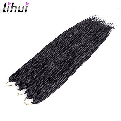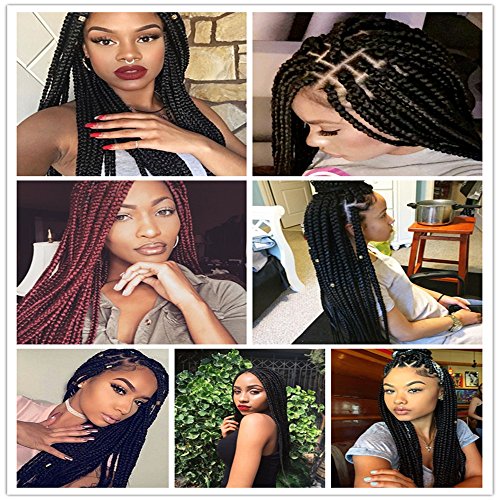 Product Description Hair Material:100% Synthetic Hair, Kanekalon Fiber High Temperature Color: #1B, #2 Quantity:7 Piece Per Package,75-100gram/Pack,20Roots/Pack Hair style:box braids crochet hair Gifts: One Crochet Hoods and some Beads Free