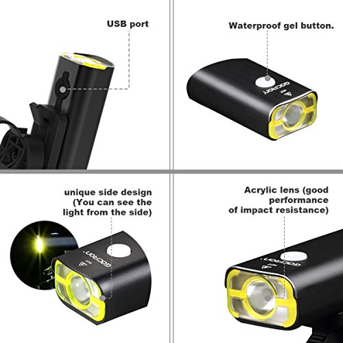 Studio : OUTERDO Publisher : OUTERDO Binding : Misc. Product Description Specifications: Headlight: Body Material: Aeronautical Aluminum Alloy 6063 Flashing mode: 5 Modes Waterproof: IPX3 Waterproof Charing: USB Rechargeable Battery: Built-in Battery (2500mAh) Maximum Output: 400 Lumensbr> Color: Black Weight: 120g LED: CREE XPG2 Floodlight Angle: 85¡a Product Size: 97mm*33.8mm*30.76mm Runtime: High 2.5h / Midium 4.5h / Low 8.5hbr> Tail Light: Waterproof: IPX5 Waterproof Flashing Mode:3 Modes Battery: 2x CR2032 pre-installed,200mAh Warning Distance : 250 meters Warning Range:180 degrees Weight£º19.7g Non rechargeable Features: -Great for climbing, biking, camping, hiking reading, repairing and responding power failures at home.and other outdoor sports. -Come with a 3 modes waterproof bike tail light and a linear controller. -A multi-purpose tool,IPX-3 waterptoof can be adapted to all kinds of bad weather. -There are five modes and it is USB rechargeable bike light. -It has a long tun time after full charge. -Super Bright with 400 LUMEN. Package Includes: 1x Front Light 1x Red Taillight 1x Cable Swich 1x USB Recharge Cable 1x Holder 1x Instruction