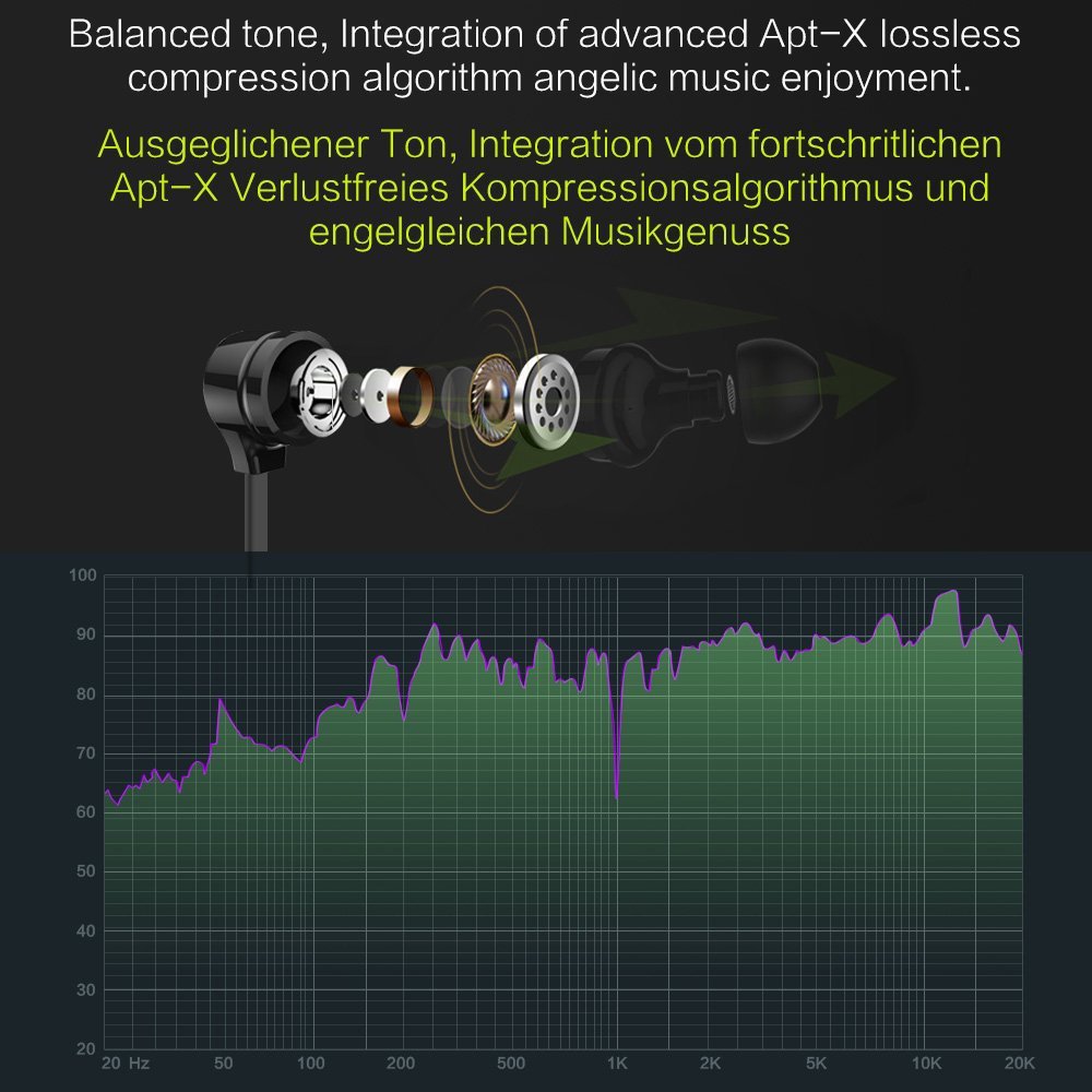 Adopt cutting-edge CSR 4.0 Bluetooth chip, CVC 6.0 noise cancellation and aptX technology, you can enjoy high fidelity stereo music, clear voice and CD quality stereo sound.