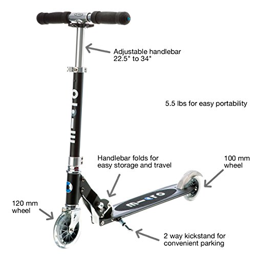 - Feature : STYLE - the Sprite is sleekly designed with a cool Metallic Black color. / CONSTRUCTION - the solid construction means you won't shake or rattle when you roll - you can FEEL the quality on a scooter made by micro. / SMOOTH GLIDE - the Black Sprite wheels are of highest quality polyurethane, which means you get a smooth, quiet ride. / MODULAR CONSTRUCTION - every part is replaceable, which means your Sprite can last, virtually forever. / Ages 8+up