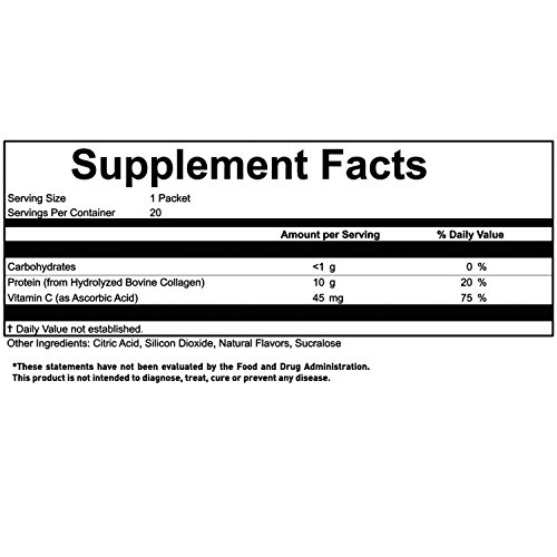 -. Feature : Formulated with Hydrolyzed Peptone B Collagen, that are broken down into a smaller size for easy absorption / Contains antioxidant properties of Vitamin C, which promotes collagen synthesis / Conveniently packed in 20 individual stick packs that is easy to carry to work, school or travel