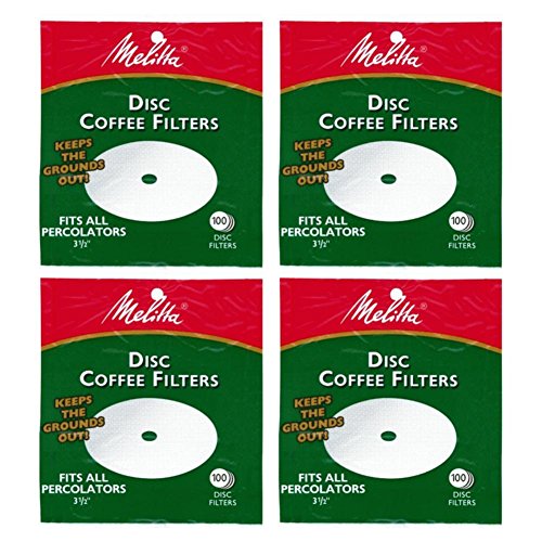 Product Description Disc coffee filters keep the grounds out. Fits all percolators. Size 3 1 2" diameter. 100 disc filters per package. Pack of 4, total of 400 filters! 0