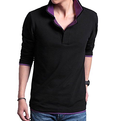 원본상품명: (エフバイフォ?) F×4 メンズ 長袖 レイヤ?ド 風 ゴルフ ポロ シャツ FMT012 (ブラック×パ?プル 2XL)
