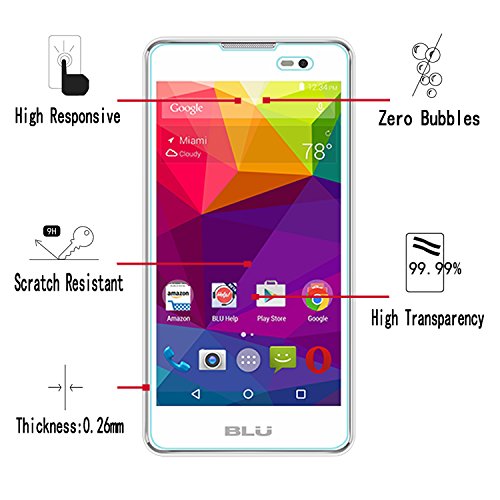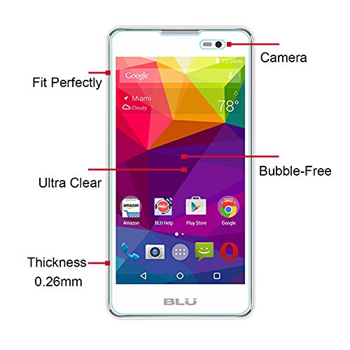 -. Feature : 1. [2 pack] This Tempered Glass Screen Protector designed fits BLU Advance 5.0 only, will not fit any other cell phone. / 2. The Protection of the tempered glass screen protector includes 9H hardness (harder than a knife's blade), effectively resists scratch by key, knife and any other sharp objects. / 3. With High transparency (99.99% light transmission Ratio), Screen Protector Keeps your BLU Advance 5.0 phone screen HD Clear / 4. [0.26 mm] in Thickness,Ultra Thin Screen Protector can bring Better sensitivity and touch feeling. With Oleophobic coating, it can clean easily and reduce fingerP.R.Int and smudges.