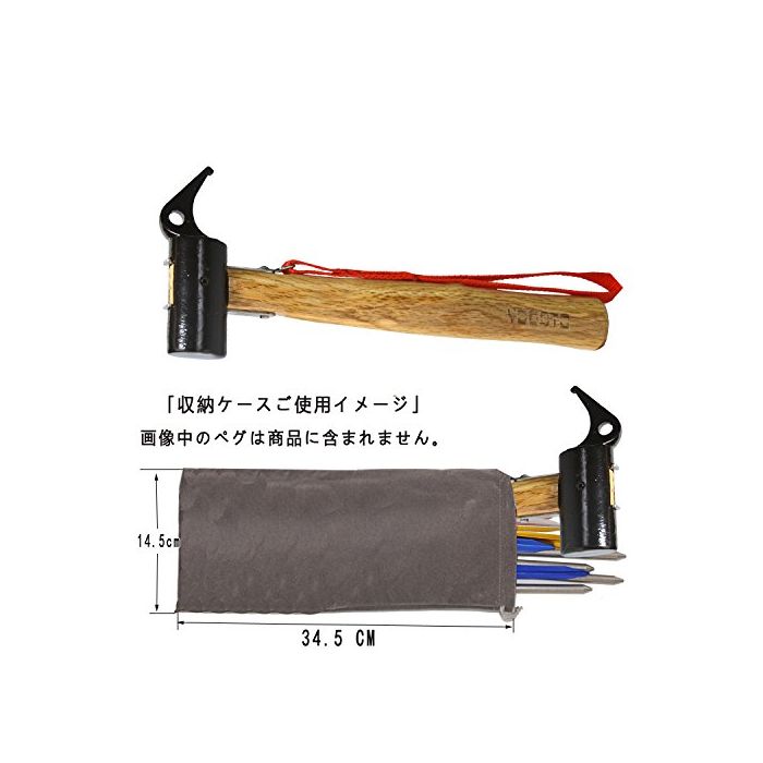 YOGOTO 페그(말뚝) 해머 목제 손잡이 안전 벨트부 (헤드 스틸) 수납 봉투 첨부
