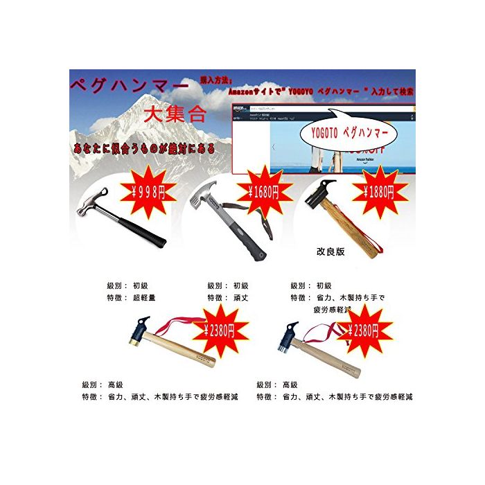 ◇텐트나 타프를 확실히 지면에 고정할 수 있는 페그(말뚝) 해머입니다.또한힘도 들이지 않고 페그(말뚝) 다운 할 수 있으면 들어 있습니다.