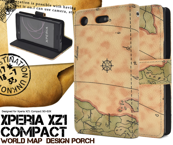 Xperia XZ1 Compact SO-02K用ワールドデザイン手帳型ケース