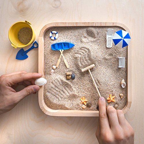 Studio : Kenley Publisher : Kenley Binding : Toy Product Description Your own private beach Create your own beach scene on your desk or a sunny windowsill at home. This stylish set draws on nautical elements to create a zen garden style sandbox which is also a fun toy. Kids and adults alike will be delighted by this indoor beach. Adults often find a few moments curating and arranging their sandbox lets their mind process and solve work problems, while kids just want to have fun! The set is shipped in a beach-themed presentation box and makes an ideal gift, particularly for those who love travel and the outdoors. The stylish beech and pine box makes a lovely ornament for home or office, and a transparent lid keeps sand contained during display.