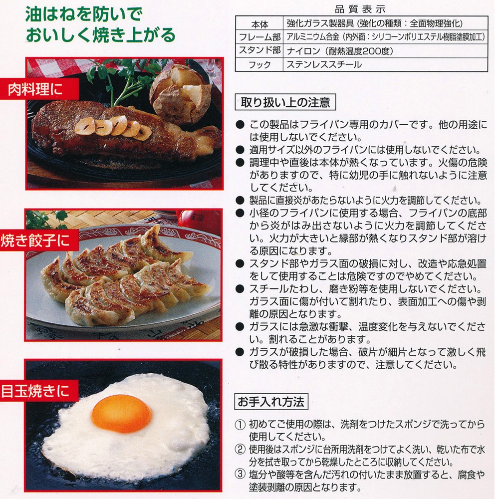Because it was the product I was looking for, I repurchased the same thing instead of a broken lid. It is just good for our frying pan, it's not all glass, so it's lighter, because some glasses are visible so you can see the inside, so it's easy to use, so I use it regularly.