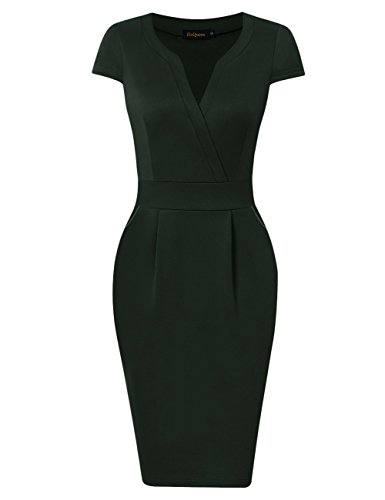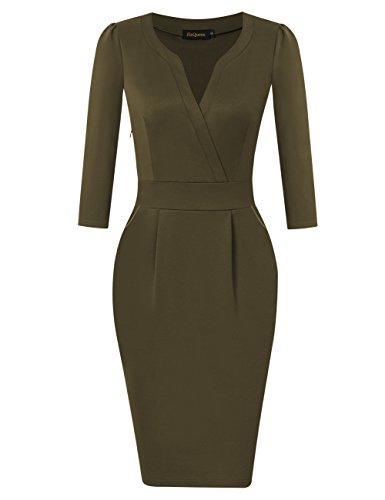HiQueen Strechy V-neck bodycon Business Wear to Work Dresses for Women
