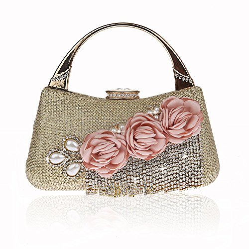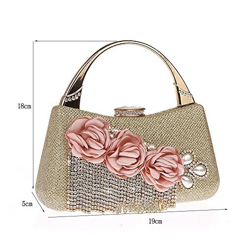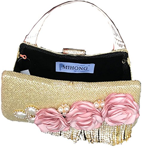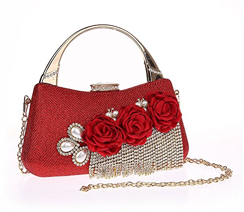 YOU ARE A NOTICEABLE ONE Emulated roses, sparkling diamonds, cascades of beaded tassels, dotted in the front of handbag.Under the bright light, you will be very attractive in your chic dress and your handbag. If you are a bride who wears a delicate wedding dress with this precious handbag, you will be beautiful and be attractive at the wedding.You will charm your prince. If you have a girlfriend , you can give it to your sweetheart gril as a gift.Basic Information:Outer Material: hardware frame and linenInner Material: soft satin lining Closure: elegant clasp closure Size:7.48" (L)X1.97"(W)X7.09"(H)117cm shoulder chainNet Weight:550gPackage include:1 x handbagReturn Policy:If you receive broken,damaged,wrong item or do not like it,please contact us with some pictures about the stuff you received,and our customer service will figure out the problem and offer you the best solution within 48 hours.If for other reasons, we encourage our customer to contact us, we will response in two business days and do our best to serve you.