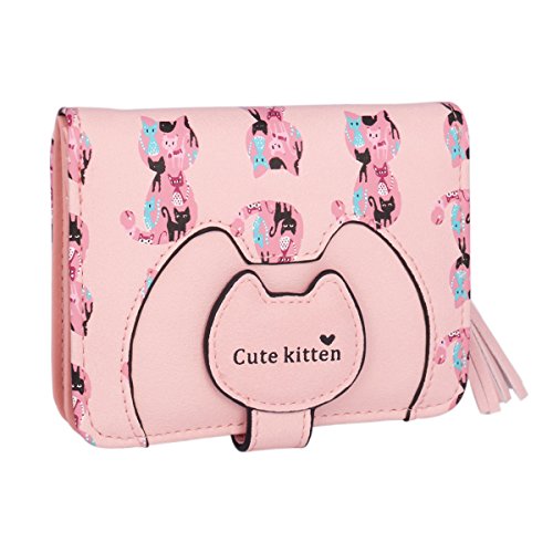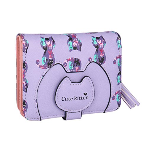 Adoptfade Womens Cute Cat Wallet Tassel Small Coin Purse