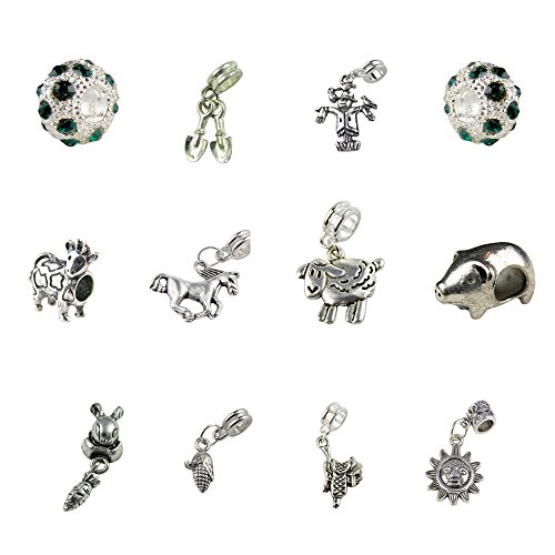 Set of 12 Farm Charms, Animal Charms and Beads
