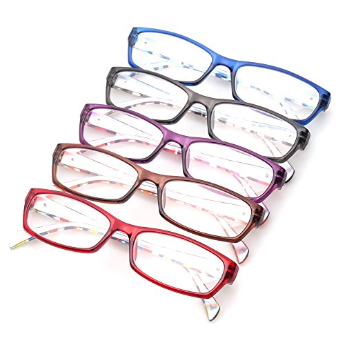 Product Description Description: 100% brand new and high quality Stylish ,light and comfortable Don't give pressure to your nose while reading Clear and stretch free lenses They are also perfect gifts to your parents and the elderly Glasses will not fall off when you lower your head, hanging over your neck Quantity: 5 Pcs Specification: Material : PC Frame, AC Lens Diopter available: 0.5/ 0.75/ 1.0/ 1.25/ 1.5/ 1.75/ 2.0/ 2.25/ 2.5/ 2.75/ 3.0/ 3.5/ 4.0/ 4.5/ 5.00/ 6.00 Width of the forehead frame :13.5cm/ 5.31" (approx.) Frame Height:2.7cm/ 1.06" (approx.) Lens Width : 5.4cm/ 2.13" (approx.) Leg Length :14.0cm/ 5.51" (approx.) Color : Gray / Brown/ Red / Blue /Purple Note: Size for manual measurement, there may be a 0 to 1 cm error, belongs to the normal phenomenon. Due to the difference between different monitors, the picture may not reflect the actual color of the item. Thank you! Package includes: 5 x Reading Glasses