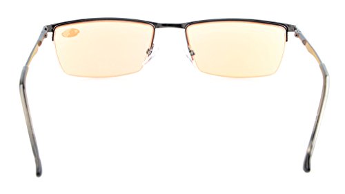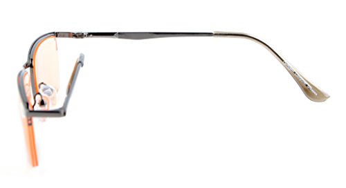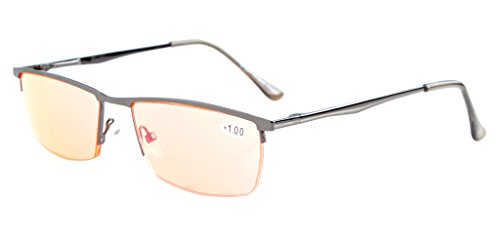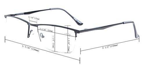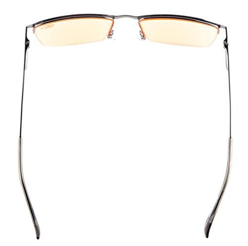 -. Feature : PRODUCTS DIMENSION-Frame material: Metal, Lens width: 2 1/16" (53mm), Frame width: 5 7/16"(138mm), Lens height: 1 1/4" (31mm), Frame height: 1 5/16" (33mm), Bridge (DBL): 11/16"(17mm), Temple length: 5 1/2"(140mm),SP.R.Ing hinge: Yes, Lenses: Aspheric, Head size:Narrow to Medium. / EYEKEPPER HALF-RIM COMPUTER EYEGLASSES- Obliterate Blue Light with our patented computer glasses that will keep your eyes safe from all harmful blue light, designed for anyone using an electronic device such as computers, T.V.'s or phones.This meets the requirements of the U.S. FDA, and exceeds European Union requirements / EYEKEPPER SP.R.ING HINGE COMPUTER GMAING READING GLASSES-included a microfiber cloth and hard zipper case,Superior Blue Light Blocking Computer Glasses that will reduce eye strain when working on a computer, tablet, phone or television.Excellent for Relieving Visual Discomfort and fatigue associated with using a computer for long periods of time / QUALITY FRAME -FDA registered Reading Glasses and Eyewear,Accord with ANSI Z80.3-2010,Accord with BS EN ISO 12312-1:2013 and EN14139:2010,Accord with AS/NZS 1067:2009,Top quality metal frame, aspheric lenses and have sP.R.Ing-loaded hinges / LIFETIME BREAKAGE WARRANTY&30 DAY MONEY BACK GUARANTEE: In case any broken problem happens, contact the seller of Eyekepper without hesitation to solve the problem until satisfaction. Eyekepper provides lifetime after sale service for all Eyekepper computer readers glasses. Customers can return and get refunded for any reason. You have no risk to try