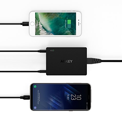 Qualcomm Quick Charge 3.0 Engineered to refuel devices up to 4x faster than conventional charging. Powered by INOV (Intelligent Negotiation for Optimum Voltage) Technology for fine-tuned power output and more optimized charging cycles. Up to 45% more efficient than Quick Charge 2.0 & compatible with a full range of USB connector types, from A to C.AiPower Adaptive Charging Technology Tuned to support healthier battery function and faster USB charging speeds, AiPower intelligently adjusts power output to match the unique charging needs of all your USB powered gear. With up to 2.4A of dedicated adaptive output per Ai USB port, your devices will each receive the safest maximum recharge rate possible. AUKEY EntireProtect Advanced circuitry and built in safeguards to protect your devices against excessive current, overheating, and over charging. Universal Compatibility Designed to work with all popular USB powered devices from iPhones to Android phones, tablets, photography gear, Bluetooth speakers, headphones and more. Whatever USB powered gear you've got, we've got you covered. 24 Month Warranty Whether it’s your first AUKEY purchase or you’re back for more, rest assured that we’re in this together: All AUKEY products are backed by our 24 Month Product Warranty. SpecificationsInput: AC 100-240VOutput (Quick Charge 3.0): 3.6V-6.5V 3A, 6.5V-9V 2A, 9V-12V 1.5A Dimensions: 4.06”×2.80”×1.02”Weight: 7.29 ozFeature