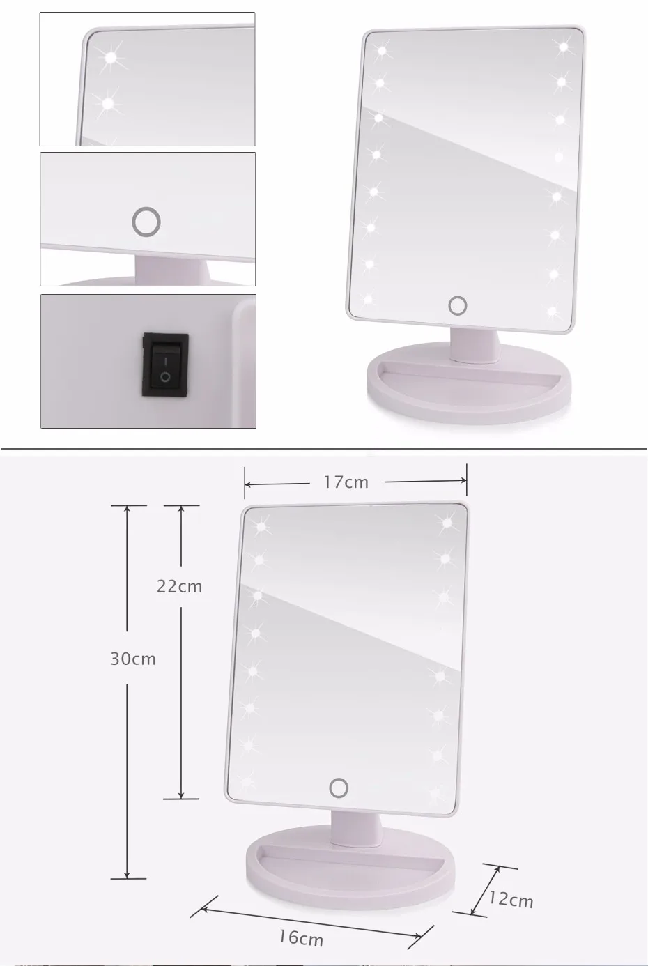 LED light cosmetic vanity mirror with 16 pieces bright LEDS, satisfying makeup needs all day long, even at nights.