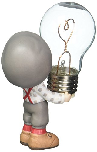 Holding up an edison-style light Bulb, this Young lad is dressed in vintage newsboy attire. Bulb actually lights up by flipping switch at bottom
