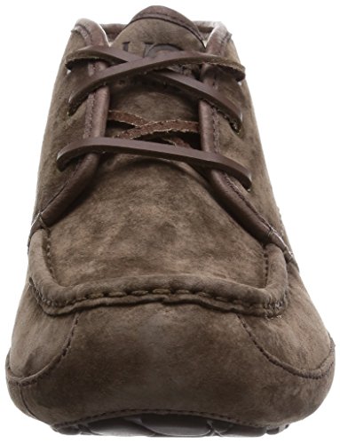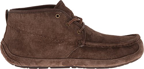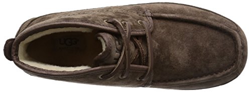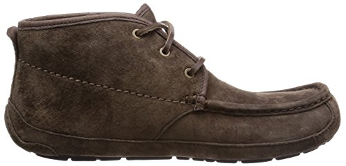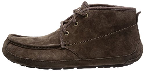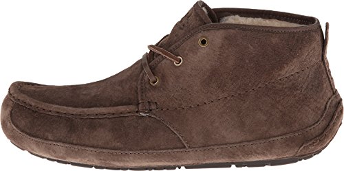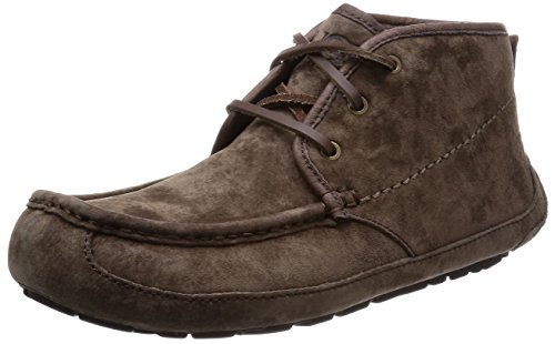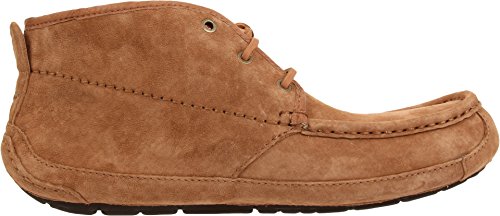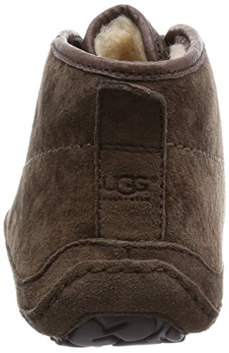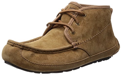 -. Feature : Feautures: Men's UGG AUSTRALIA® suede shoe. / Mid-top slipper. / Plaid printed lining. / Moc toe. / Rubber outsole.