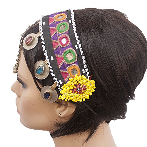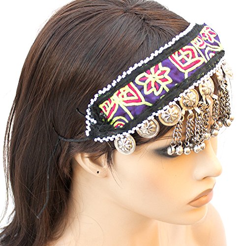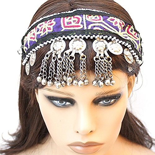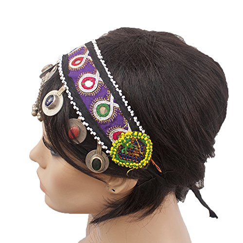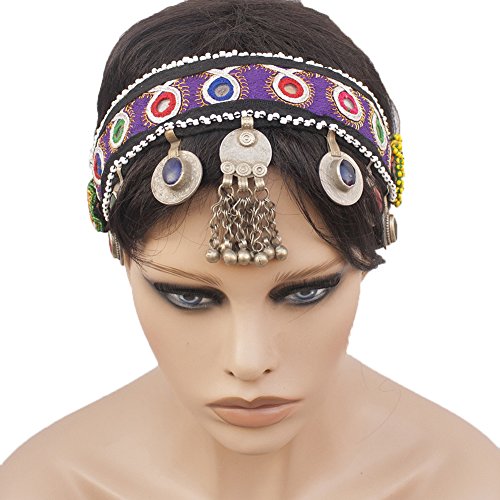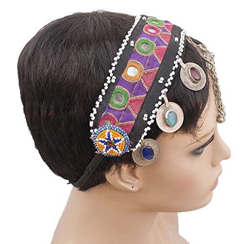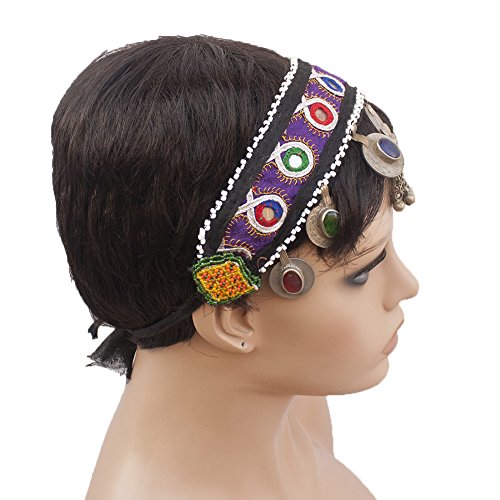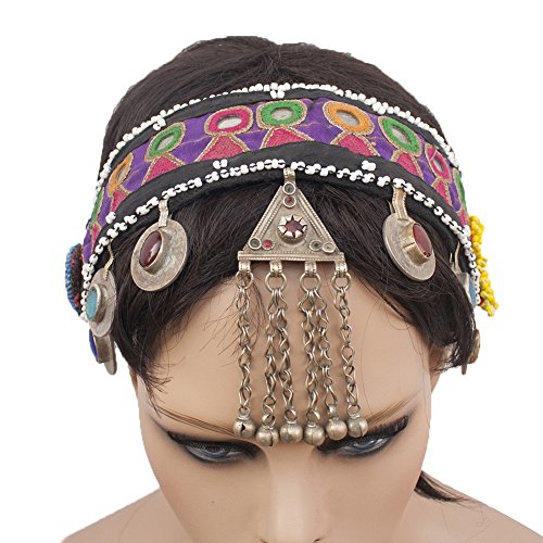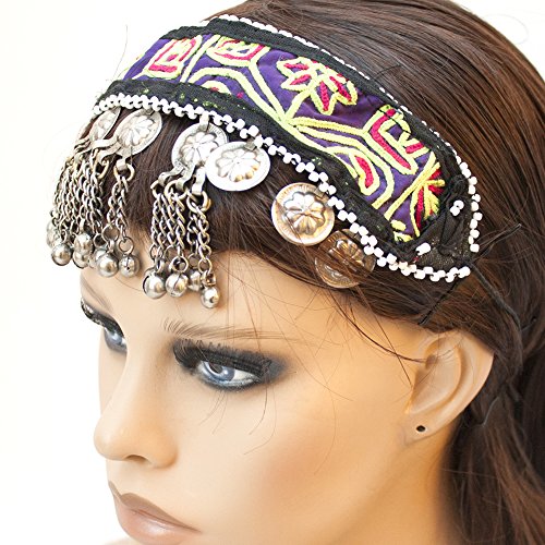 (Duel on Jewel Tribal)/Accessories/Hats/DIRECT FROM USA/Belly Dancers Embroidered Fabric Head Band with Mirrors Metal Coins Bell Ornaments and Lkapis Lazuli