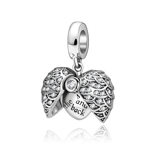 "I Love You " engraved on the front little heart , and "To The Moon And Back" on the Back, hidden in the angel's wings