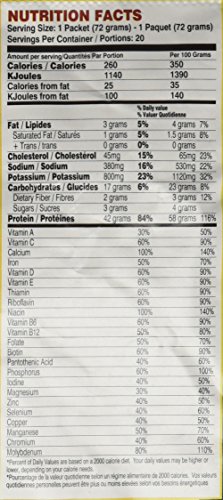 -. Feature : Pack of twenty, 2.54 ounce envelopes (total of 50.8 ounces) / Fortified with Glutamine Peptides / Low fat
