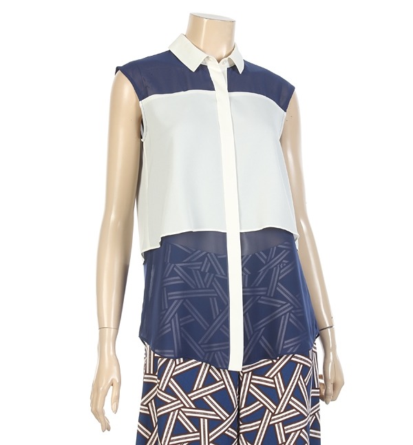 SHES MISS, 하늘하늘한 쉬폰 시스루로 여성스러운 느낌을주는 민소매 블라우스입니다