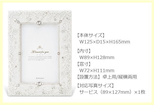 繊細に施されたチュールレース模様が女性らしい、フェミニンなフォトフレーム。散りばめられた大小様々なラインストーンと、パールをあしらったような質感が、写真を華やかに演出してくれます。 |
