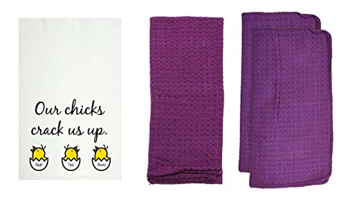 R&R Textile Mills 8 Piece Personalized Chicks Crack Us up Dish Towel Set, Violet