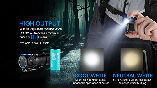 USB RECHARGEABLE - Includes a customized 650mAh rechargeable RCR123A battery as well as an Olight USB magnetic charging cable for fast, convenient power