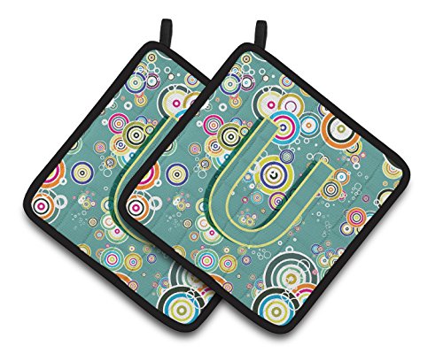Caroline's Treasures Letter U Circle Teal Initial Alphabet Pair of Pot Holders CJ2015-UPTHD, 7.5HX7.5W, Multicolor
