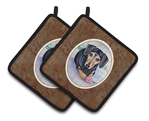 Caroline's Treasures black & Cream Dachshund Pair of Pot Holders 7076PTHD, 7.5HX7.5W, Multicolor