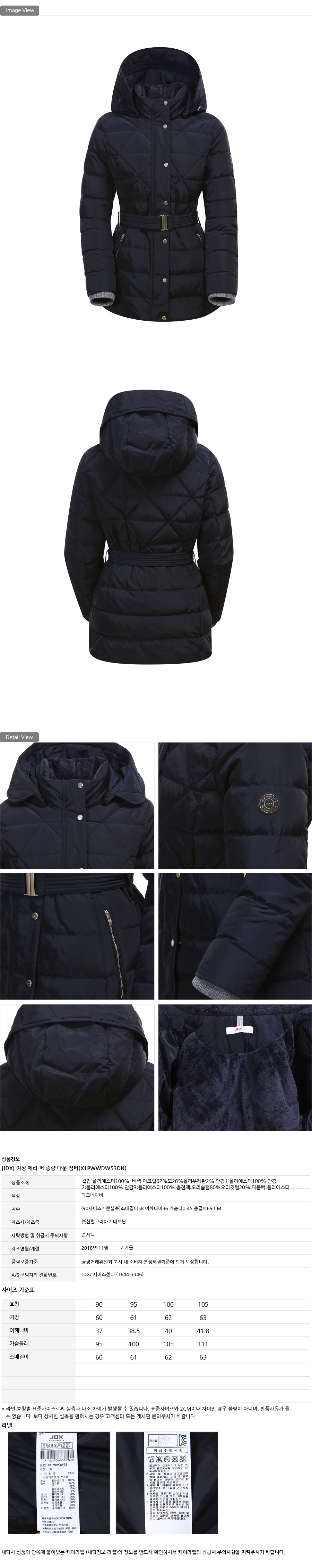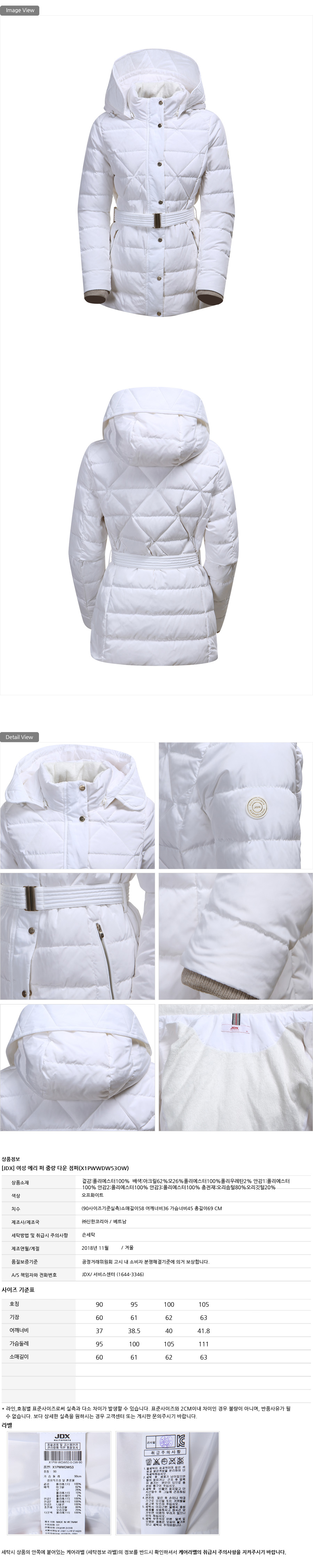 가볍고 보온력이 우수한 덕다운 충전재로 보온성이 우수합니다.