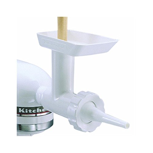 -. Binding : Kitchen -. Brand : KitchenAid -. Color : White -. EAN : 0798256049101 -. Feature : The KitchenAid Sausage Stuffer easily links to your mixer's Food Grinder Attachment for seamless sausage creation. It features a 3/8" tube for making smaller links and a 5/8" tube for larger bratwursts and kielbasas. -. IsAutographed : 0 -. MPN : na -. PackageQuantity : 1 -. PartNumber : na -. ProductGroup : Home -. ProductTypeName : HOME -. Title : KitchenAid SSA Sausage Stuffer Kit Attachment for Food Grinder by Kitchenaid Kitchen Electrics -. UPC : 798256049101