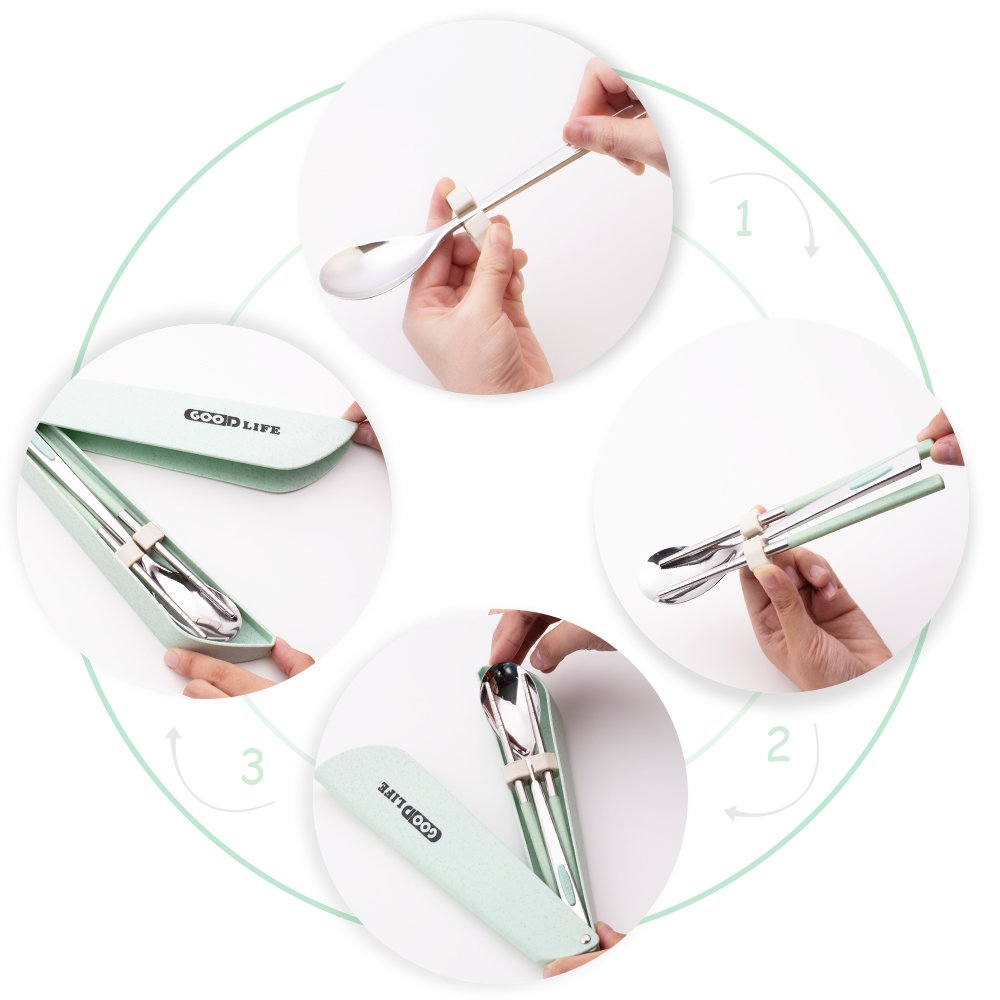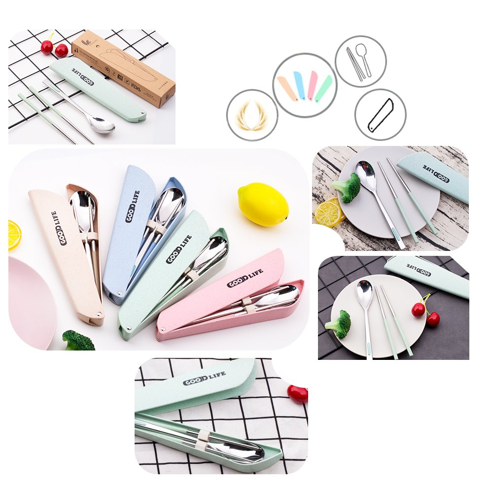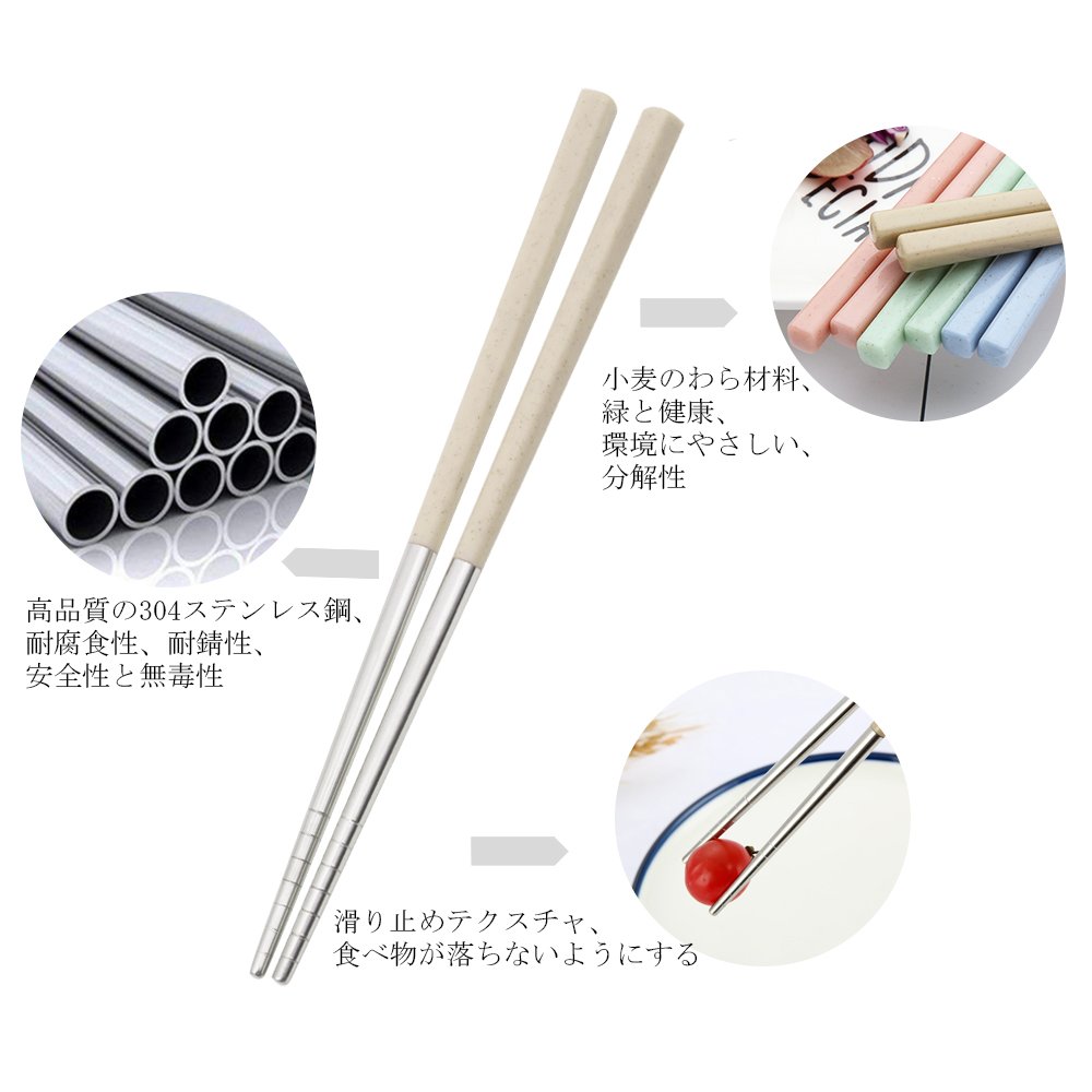 環境保護材料 健康と無害】インポートされた304ステンレス鋼原料を使用した箸のスプーン、それは耐酸性および耐アルカリ性であり、タイトな構造を有し、FDAの食品安全性が証明されており、有毒成分を含まない。小麦のわら材料は箱と箸のために使用されます、健康で環境にやさしい。
