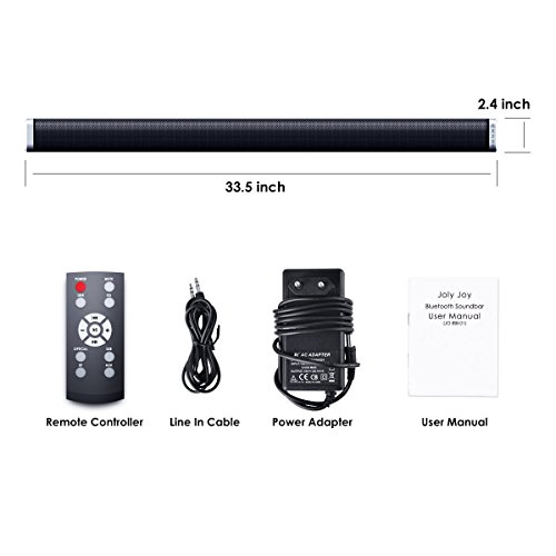 -. Title : Soundbar for TV, Joly Joy 30W Wireless Audio Speaker with Subwoofer Output, Bluetooth 2.0-Channel Sound Bars 33.5-Inch w/ Remote Controller (3.5mm Line-in Cable Included)