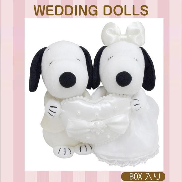 可愛いスヌーピー&ベルがハート型のリングクッションを持っています。二人とも花婿と花嫁の衣装を身に着け、ご結婚される人たちを祝福しています♪