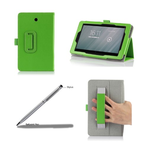 Built-in flip stand with two viewing angles (watching and typing); Built-in elastic hand strap, stylus pen holder; Comes with bonus stylus pen