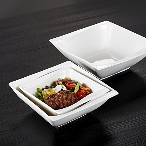 Malacasa, Series Carina, 3-Piece Ivory White Porcelain China Ceramic Cream White 7" & 8.5" & 10" Dinnerware Serving Bowl Set