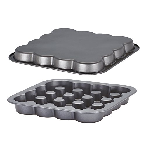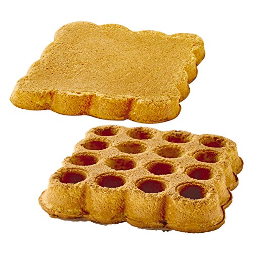 Each pan holds 1 package of cake mix (2 packages needed) and the top-side pan can also be used as a traditional cake pan allowing for a multipurpose use