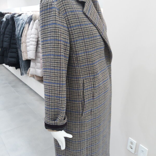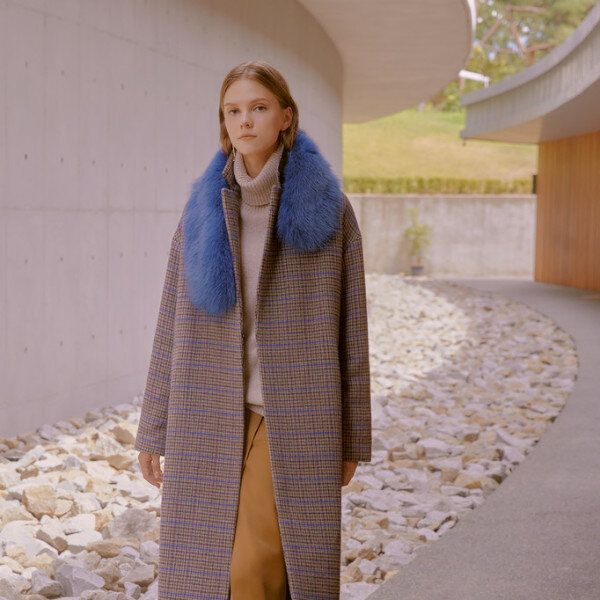 포인트 코디하기에 적합한 체크코트 입니다 H라인 실루엣으로 깔끔하며 소매 롤업하여 배색 스타일을 연출할 수 있습니다 울 혼방 소재로 포근하면서 부드러운 터치감을느낄 수 있으며 히든 고리 클로징으로 탈착의가 간편 합니다