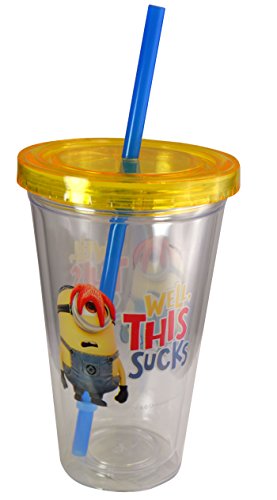 -. Title : Zak Designs Minions 16.5 oz Double Wall Tumbler with Lid and Straw