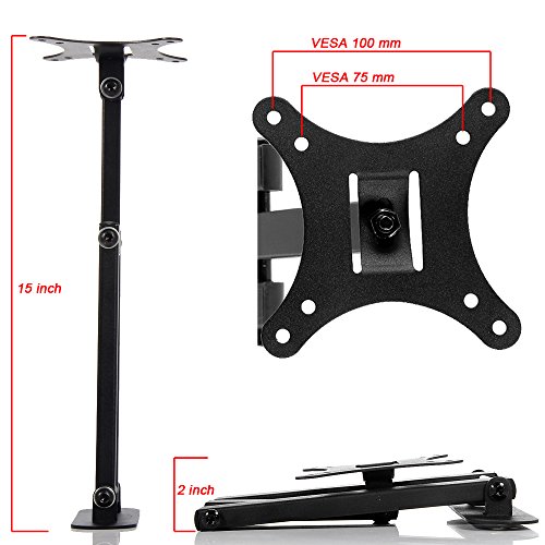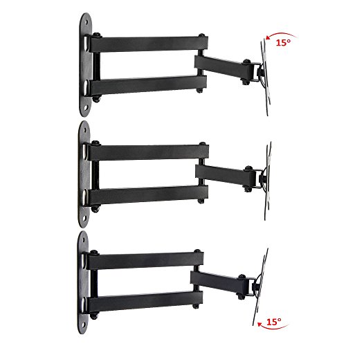 -. Feature : Fits for most of 10-29" TVs up to 33lbs(15kg),fit VESA(mounting hole pattern) 75x75mm,100x100mm / Low Profile mount retracts to 2" to save space, Extends 15" from the wall / Tilt: 15 degrees Down/Forward;Total Rotation:90 degrees Right/Left / Built-in bubble level for better balance;Easy installation, installation manual and fitting screws and bolts included; / Please check VESA (mounting hole pattern), stud spacing, possible blocked cable/input and TV weight P.R.Ior to making purchase decision to determine whether this TV wall mount fits your TV and the installation application.